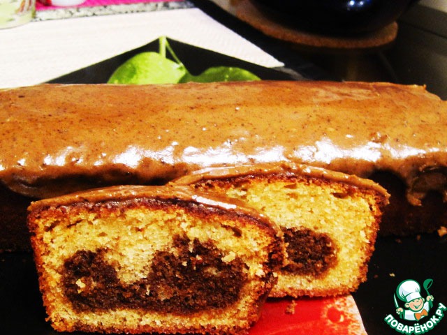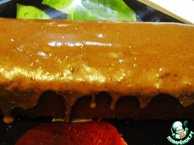 Приготовить помадку: 1 стакан сахарной пудры смешать с 2 ст. л. кофе и залить 2 ст. л. крутого кипятка. Мешать до полного растворения сахара и сразу вылить на кекс. -