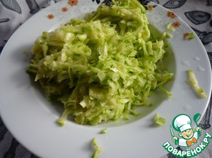 У кабачков срезаем края, трем на крупной терке. Выжить лишний сок руками.