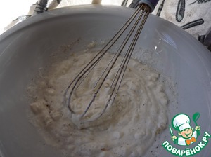В миске смешиваем йогурт, чеснок (1-2 зуб.), соль, перец (мешаем венчиком).