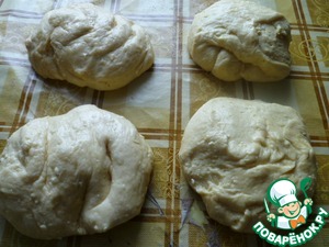 Для удобства разделим тесто на 4 части. С тестом очень удобно работать, если смазать руки растительным маслом.