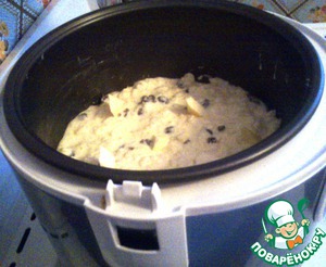 Смазать ведерко мультиварки сливочным маслом и вылить половину рисовой смеси, затем выкладываем яблоки и вторую половину риса. Сверху порежем несколько кусочков сливочного масла.