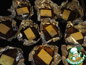 Для "склеивания" с куриным филе, на каждую котлету кладем кусочек сыра.