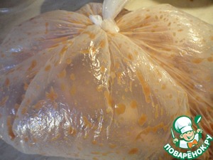 Завязываем пакет и очень хорошо его перетряхиваем, чтобы маринад равномерно распределился. Отправляем пакет в холодильник до утра для маринования.