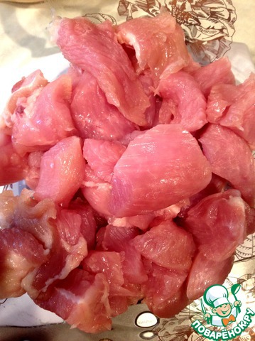 Мясо индейки промыть, обсушить бумажным полотенцем и нарезать небольшими кусочками.