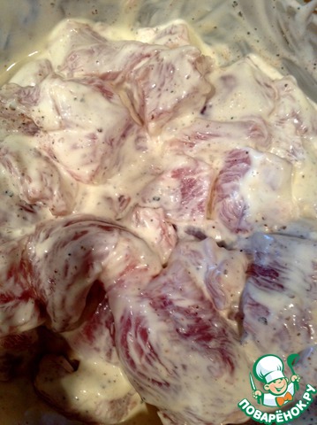 Мясо посолить, поперчить, добавить сметану и давленный чеснок. Перемешать и отправить в холодильник на часик-другой. Время приготовления я указала без учета маринования мяса.