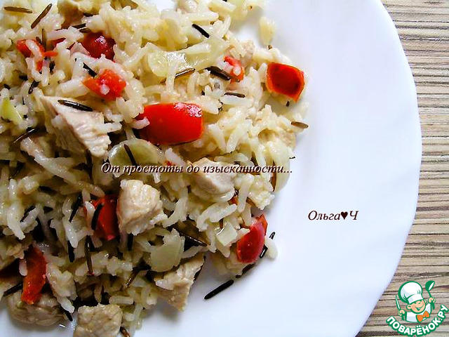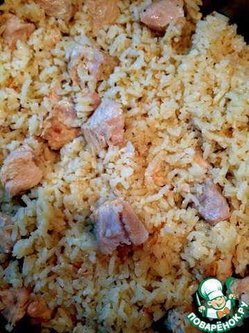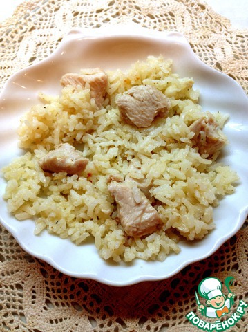 К мясу добавить подготовленный рис и тушить на маленьком огне под крышкой минут 15 (крышку не открывать). Через указанное время снять с огня, перемешать, можно еще добавить кусочек сливочного масла для аромата и подавать к столу!