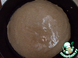 Мокрыми руками выкладываю тесто в смазанную растительным маслом форму. Верх тоже разравниваю мокрыми руками и смазываю маслом.