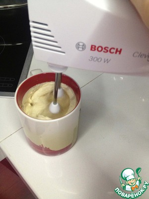 Взбиваем белки с щепоткой соли в крепкую пену и аккуратно добавляем в массу с желтками.