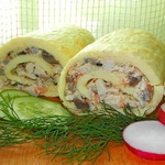Яичный рулет с грибами