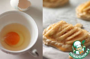 Яйцо немного взбить, обмазать им тесто и яблоки и присыпать сахаром.
