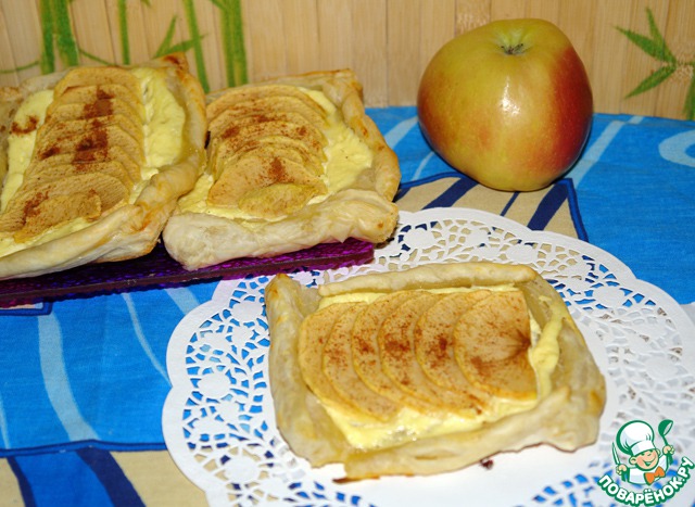 Рецепт «Слойки с яблоком и творогом»: