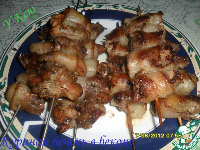 В последнее время любой выезд на природу у нас не обходится без дополнения к свиным шашлыкам вот таких "шашлычков" из печени. Я печень никогда не ела, терпеть ее не могла ни в каком виде, а вот в этом это просто сказка, ем и ем. Да она и не похожа даже на "себя". Теперь я готовлю ее уже и дома в АГ. Очень вкусно