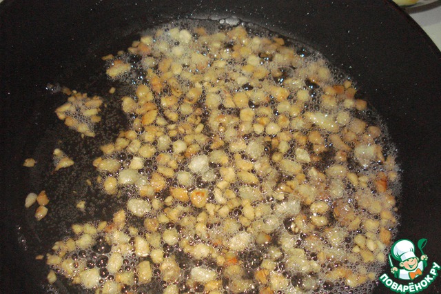Тем временем сало (у меня было свежее, но, наверное, можно и солёное) режем мелко и на сковороду.