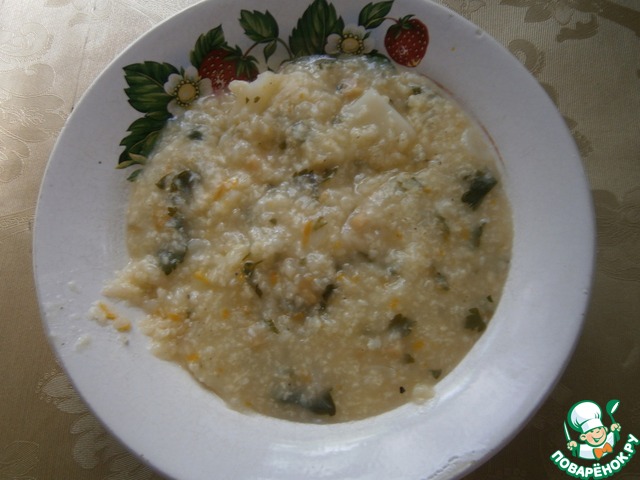 Зажарку добавляем к пшену. Также добавляем мелко резаный чеснок (или через пресс). Готовим ещё 15-20 минут.