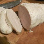 Время прошло, колбаска отлежалась, достаем, освобождаем от пакетов.