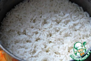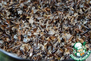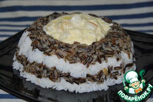 И начинаем слоями выкладывать рис: дикий, белый, дикий, белый.
