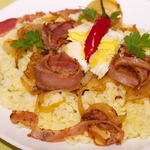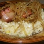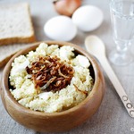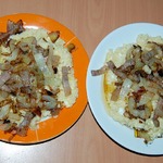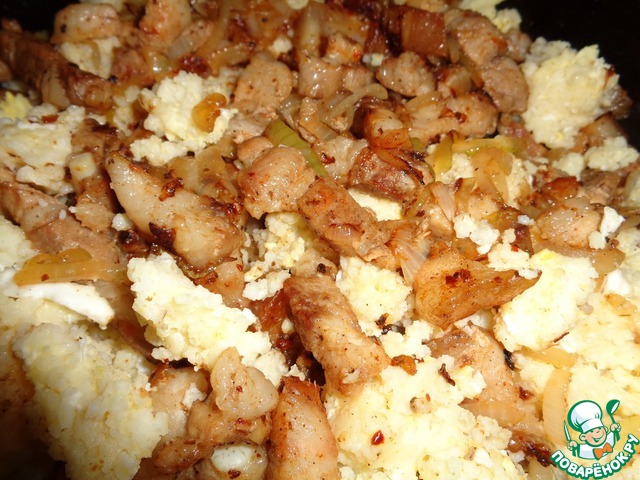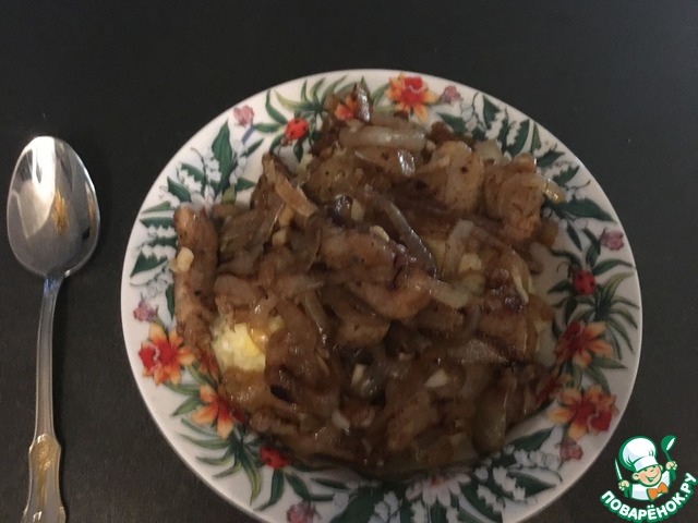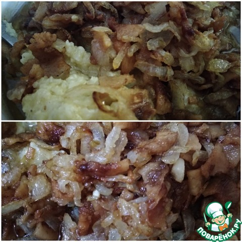 Добавляем лук и обжариваем до румяности. Какой запах... Видимо, так "русским духом пахнет".