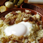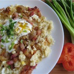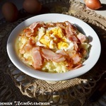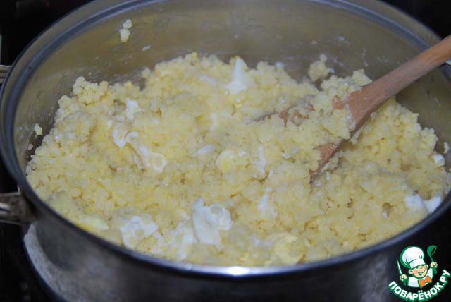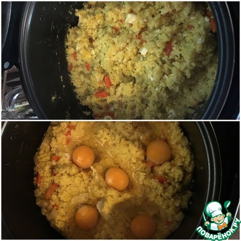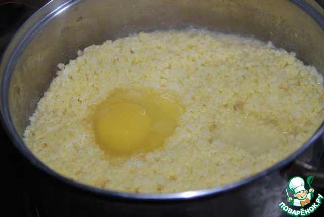 За 10 минут до окончания варки пшена в каше делаем углубления и разбиваем в них сырые яйца.