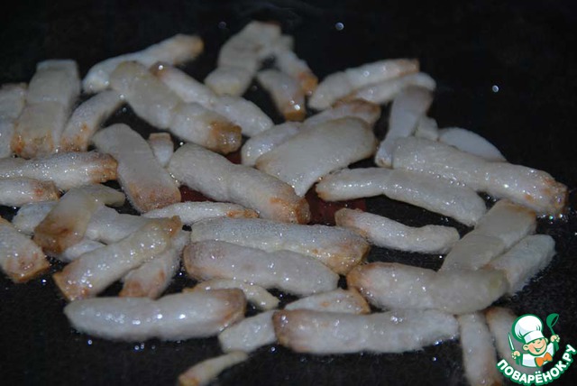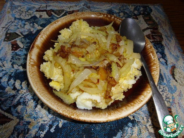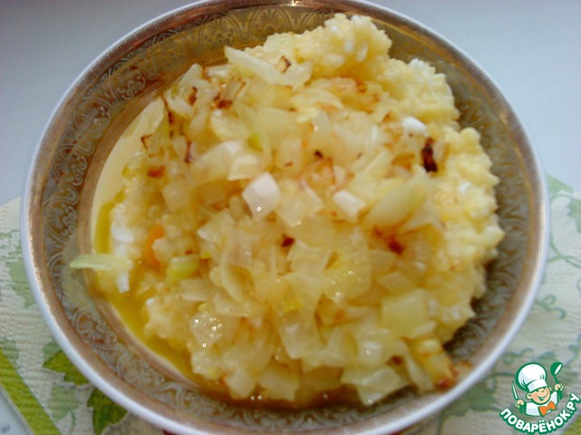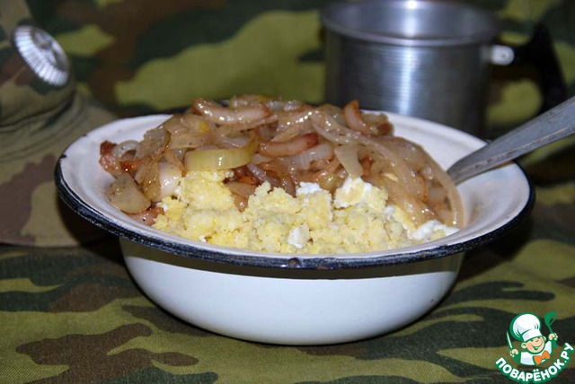 Пока варится пшено, делаем зажарку или, как называли бойцы: подливку (у них всё, что подавалось в виде соуса или зажарки, было подливкой).
