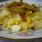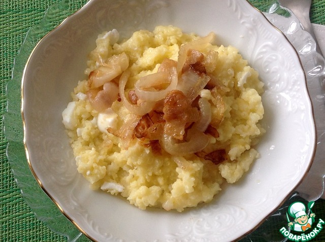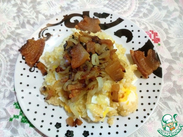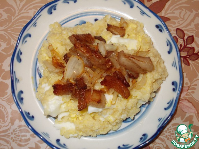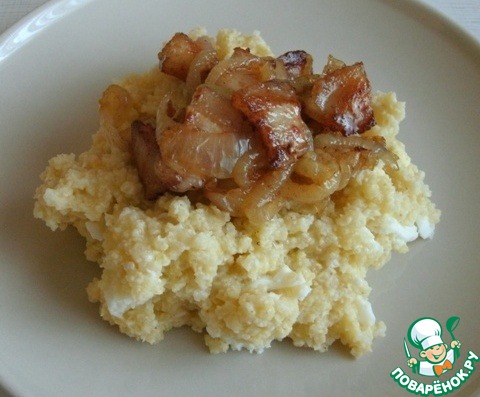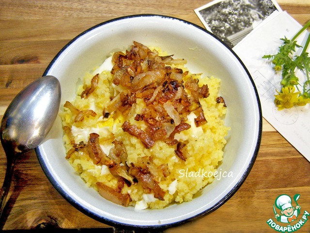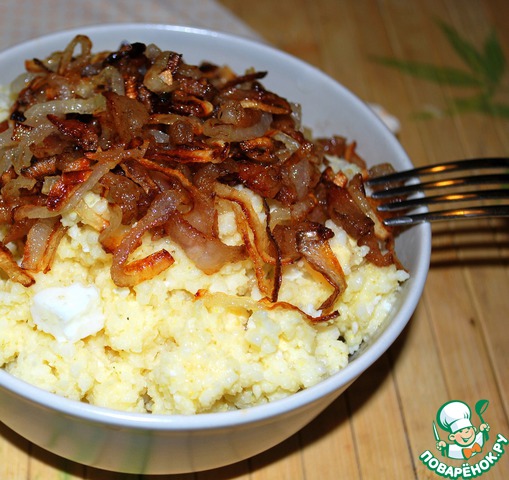 Вообще эта каша может готовиться из любой крупы, но так повелось, что готовили обычно из того, чего было больше на складе и меньше пользовалось спросом, таковой и являлась пшенная крупа. Хотя такое отношение к пшену считаю необоснованным. Пшённая крупа очень полезна и питательна, а в таком исполнении ещё и вкусна.