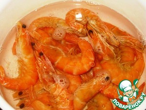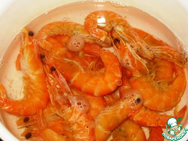 Отварить креветки в подсоленной воде. (7-10 минут).