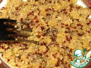 Киноа разрыхлить вилкой, чтобы она стала более рассыпчатой.