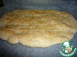 Раскатать тесто толщиной 1 см, выложить на противень и поставить в духовку, разогретую до 180 град. на 15-20 минут (как немного зарумянится).