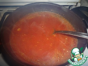 Приготовить соус: в сковороде смешать томатную пасту, сливочное масло, тимьян, соль, чёрный и красный перец, влить немного воды и, помешивая, прогреть на среднем огне до образования однородного соуса средней густоты.
