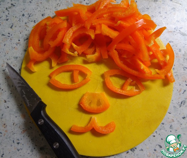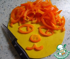 • Перец моем, вырезаем сердцевину и нарезаем полосками.