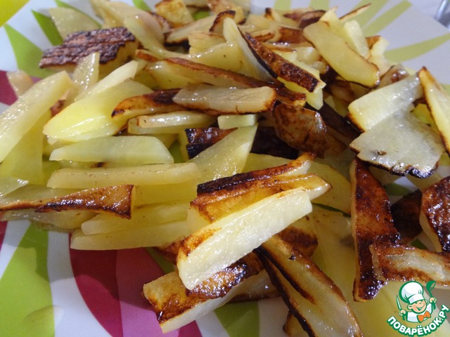• Картофель моем, чистим, обжариваем до появления корочки, слегка солим в процессе.