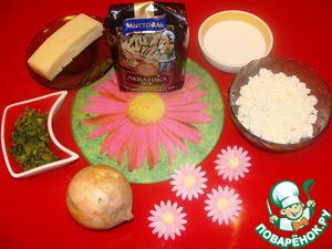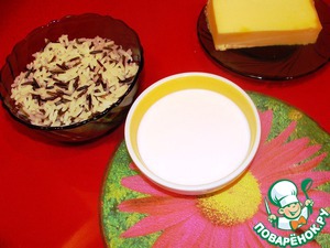 Творог смешать с молоком, протереть, добавить рис, натертый сыр, измельченную зелень, соль и перемешать.