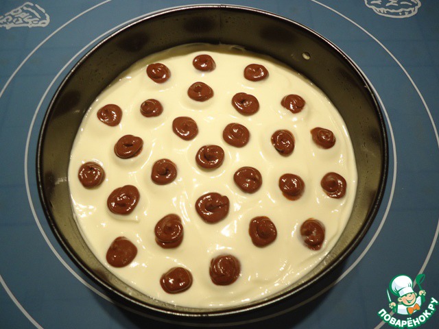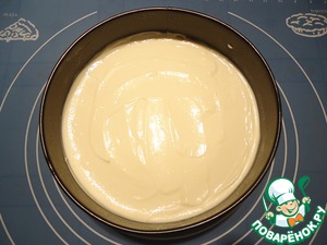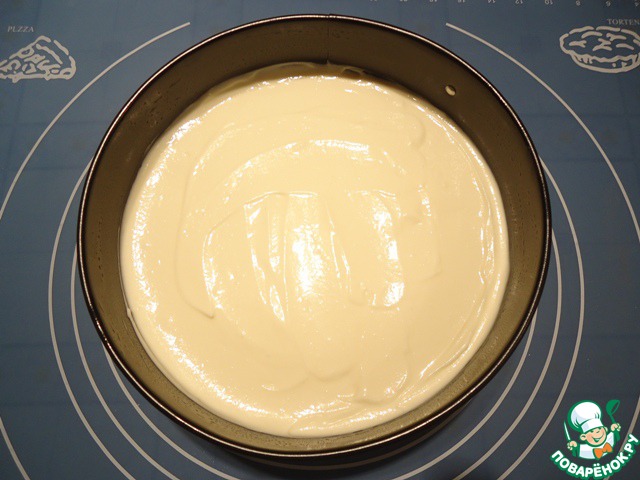 В форму с шоколадно-песочным слоем выливаем сырную массу, выравниваем поверхность.