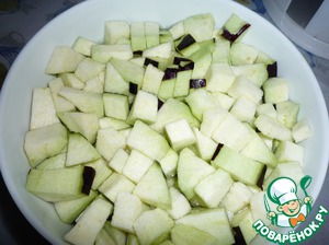 Баклажаны почистить. Нарезать небольшими кусочками. Положить в подсоленную воду на 15-20 минут.