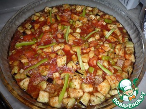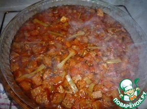 Заливаем овощи с мясом. -