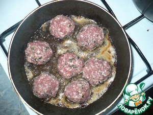 В сковороде нагреваем оливковое масло, выкладываем туда фрикадельки и жарим 7-8 минут (я делала в 2 захода). Готовые фрикадельки отправляем в кастрюльку.