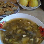 Суп солим, и варим до готовности картофеля. Уже в готовый суп добавляем зелень и яйцо, сваренное вкрутую и мелко порезанное.