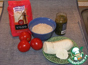• Нам понадобится белый круглозерный рис "Кубань" от компании "Мистраль" (именно этот рис подходит для этого блюда идеально, т. к. содержит очень много крахмала), спелые, но крепенькие на ощупь помидоры, сыр моцарелла, (я люблю для этой закуски использовать моцареллу с базиликом) и соус песто.