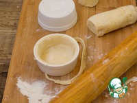 По верху формы пройтись скалкой, чтобы подравнять края и срезать таким образом излишки. Плотно накрыть заготовки пленкой и убрать в холодильник. |