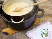 Смешать все ингредиенты для крема: сливки, желтки, сахар и ваниль. Уварить на водяной бане минут 15 до загустения. Включить духовку на 220С. |