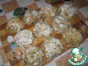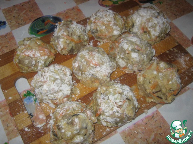 • Из полученной массы сформировать шарики, обвалять их в муке.