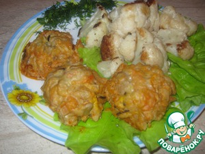 • Тефтельки готовы! Можно подать как самостоятельное блюдо со сметанкой, свежей зеленью, так и с гарниром, я отваривала соцветья цветной капусты и обжаривала в панировке из яйца.
