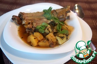 Получается сочная баранина с тонким ароматом белого сухого вина и чеснока.