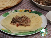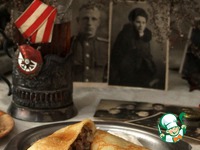 Описание: 23 февраля - день защитника отечества. В этот день обязательным для меня было поздравить своего дедушку, ведь кому, как не ему, не понаслышке знать, что такое "Родину защищать". В ряды военных он попал совсем молодой, сначала пошел в летную школу, а потом на ТУ-2 поднялся в небо, чтобы разгромить врага... На заслуженный отдых ушел в звании полковника. Сразу после войны он познакомился со своей, можно сказать, боевой подругой, любимой и единственной супругой. Которая все годы военной службы переезжала с места на место, следуя за мужем. Гарнизоны, полигоны, стрельбища, аэродромы - много чего было в их жизни, но бабушка никогда не упускала возможности побаловать мужа его любимым блюдом - блинчиками с начинкой. Одним из вариантов был лук с яйцом и гречкой, но для праздничного стола я предлагаю Вам более интересную начинку (вариант из интернета с небольшими изменениями) и хочу посвятить этот рецепт своему дедушке - за мирное небо над головой, и своей бабушке - за то, что научила меня готовить.