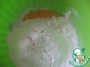 Муку просеять, добавить пудру, яйцо, ванильный сахар, смешайте.