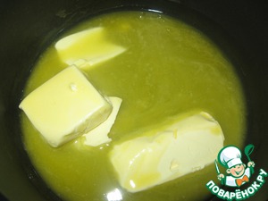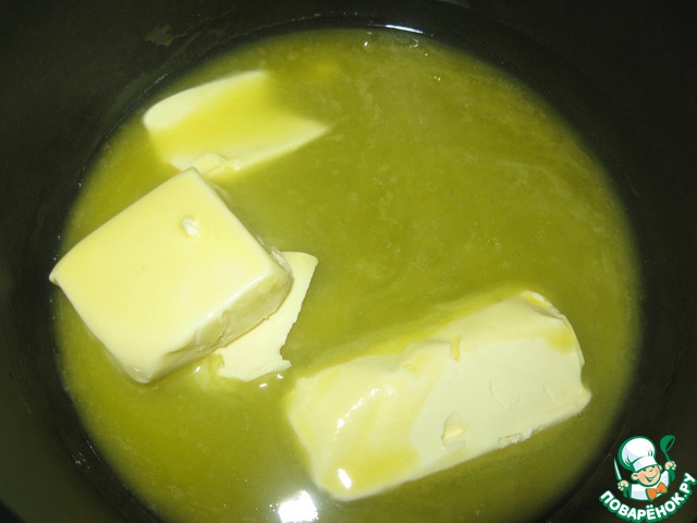 Растопите масло и, постепенно вливая в мучную смесь, замесите тесто.