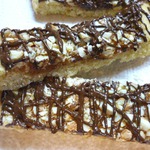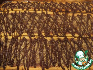Переливаем шоколад в кондит. шприц и в произвольном порядке наносим узоры на наши печеньица.