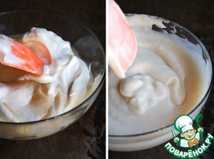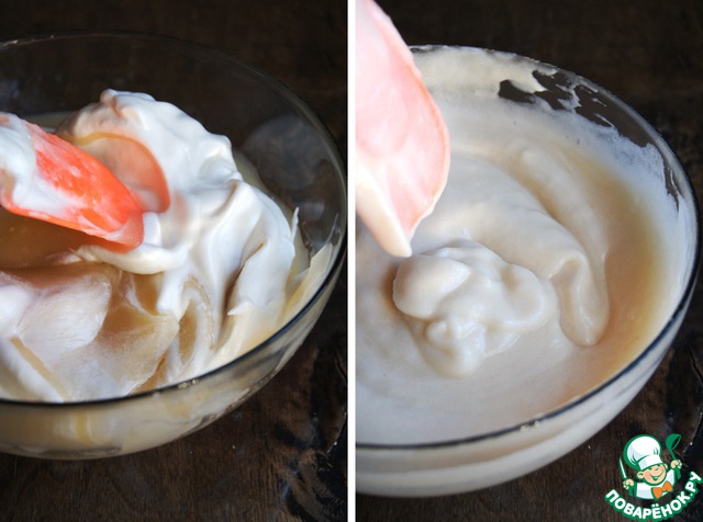 Меренгу вмешать в яблочное пюре. Небольшое количество взбитых белков можно отложить для украшения десерта.