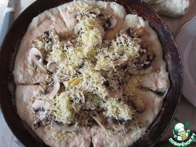 Сверху посыпаем сыром.