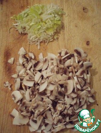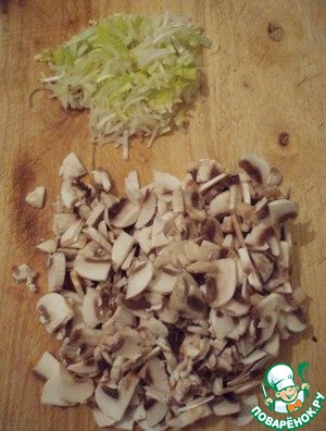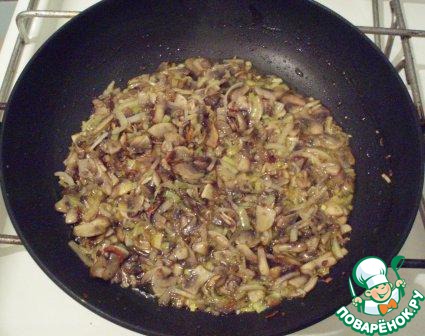 Обжарить на сковородке сначала грибы и, когда вся жидкость уйдет, добавить слив. масло, немного обжарить и добавить лук. Все хорошо перемешать и жарить до готовности лука.
