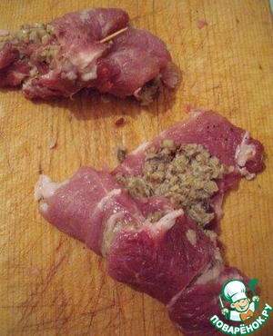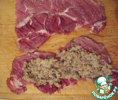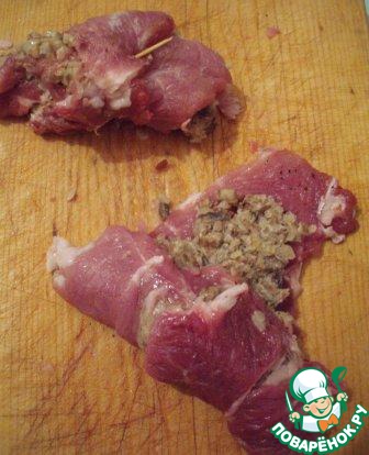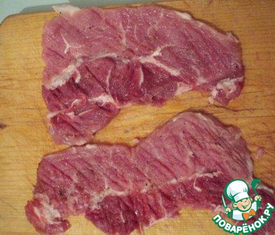 Свинину хорошо промыть, обсушить и порезать на тонкие ломтики, как для отбивных. Каждый ломтик хорошо отбить, посолить, поперчить. У меня получилось 12 ломтиков.